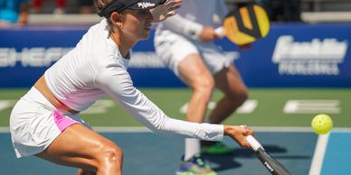 Tip #1- A low to high swing through the ball allows the arc and soft landing in the NVZ.